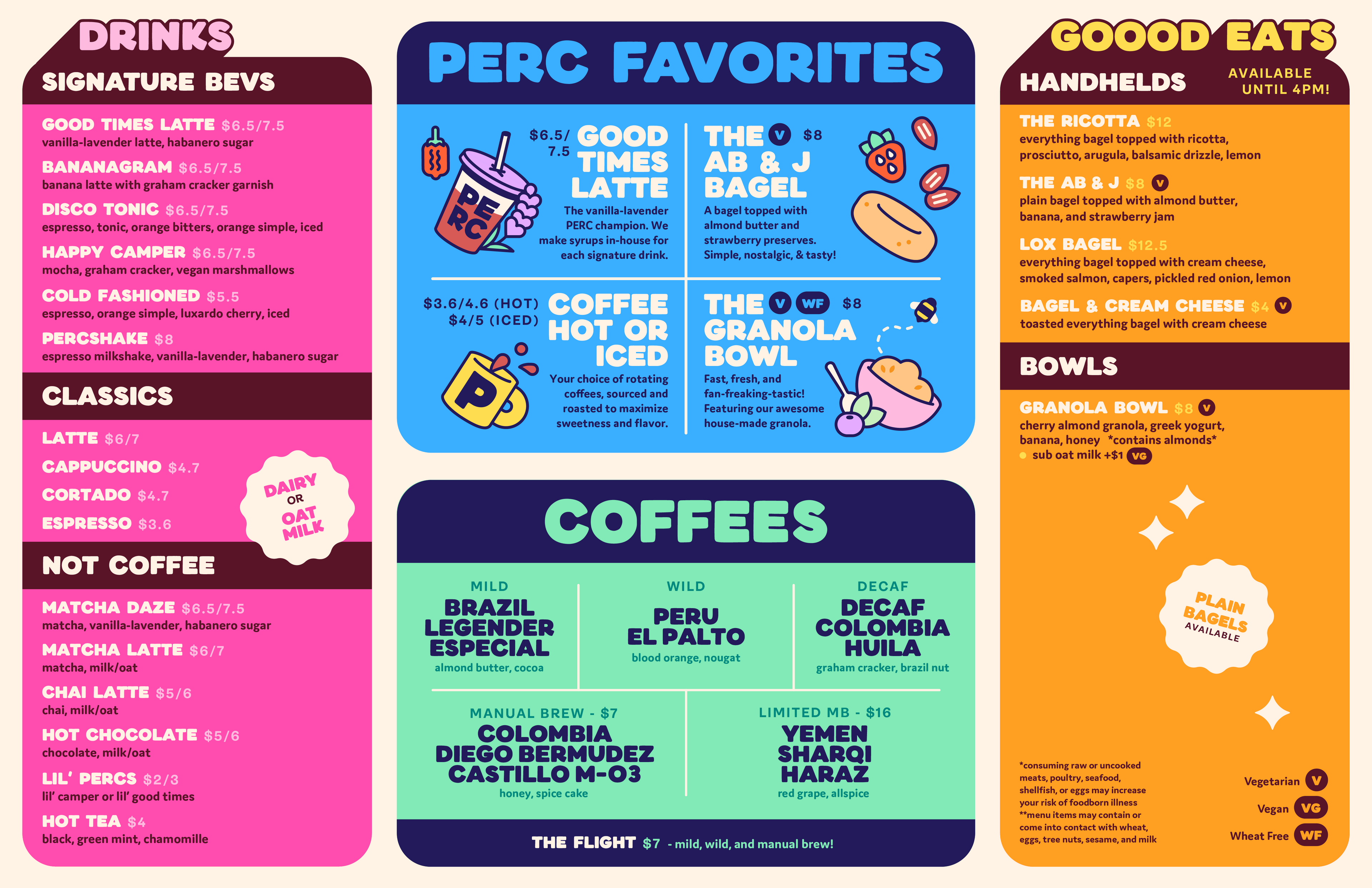 This is where the magic happens. We have all the delicious coffee and food you need to keep you going. Whether you're into the classics or something wilder, we've got you covered. Try one of our signature drinks like the Good Times Latte or the Happy Camper. If you're hungry, we've got pastries from our pals at Auspicious Bakery. If you want to hunker down into something more substantial, try one of our breakfast sandwiches. There's plenty of indoor and outdoor seating. Hey Savannah, come hang out and party with us. See you soon!